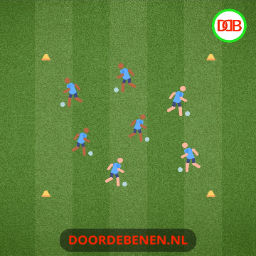 Met deze voetbal oefening verbeteren de spelers hun motoriek en techniek in de vorm van een spelletje.